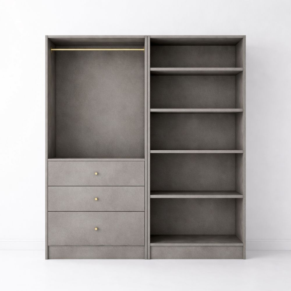 Armoire dressing modulable en Panneaux de Particules Gris avec Étagères et Tiroirs
