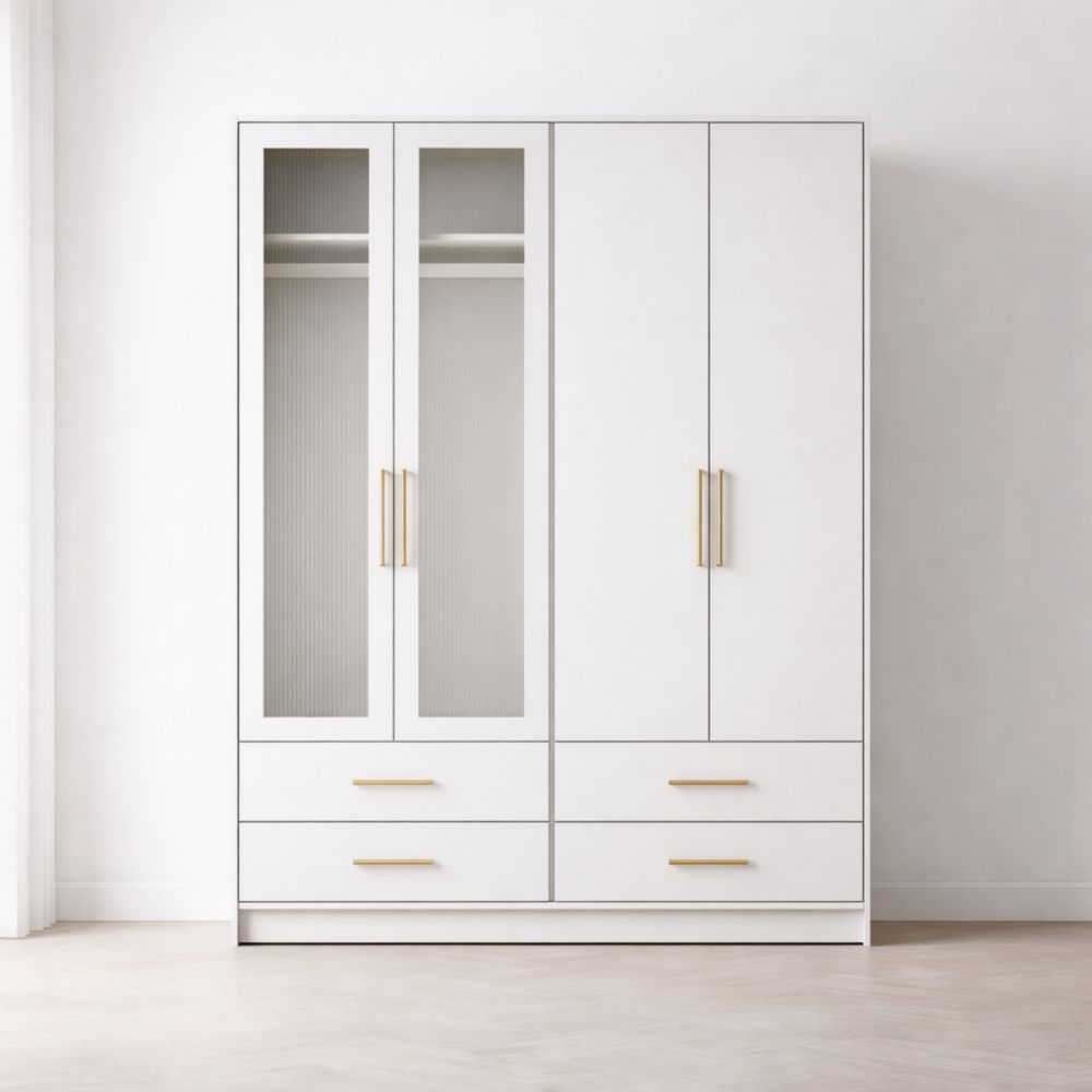 Armoire en MDF avec portes en verre et poignées dorées