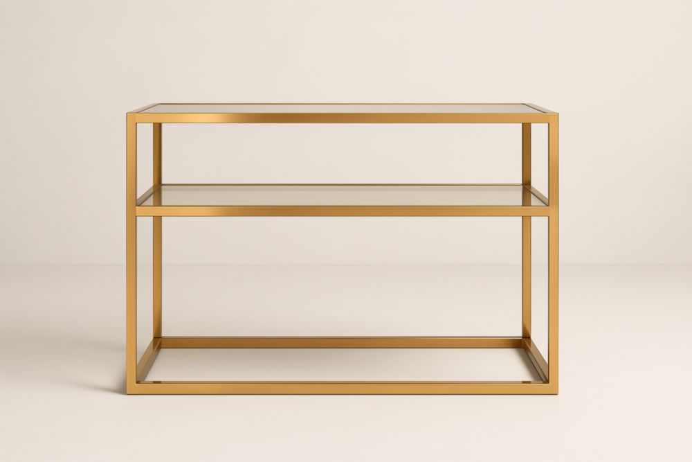 Étagère en verre trempé avec cadre acier doré